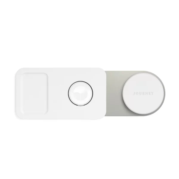 Charge all three of your Apple devices, iPhone 14/13/12, Apple Watch & AirPods together with Journey’s 3-in-1 Wireless Charging Station.